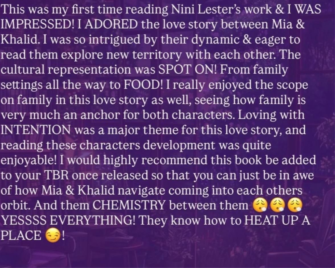As their lives intersect, Unmistakably Yours explores Black love, healing, and the courage it takes to choose yourself without closing your heart. But when an unexpected altering moment changes everything and timing is fleeting, both Mia and Khalid are forced to confront feelings they never planned to face. Woven with sisterhood, cultural identity, and the quiet power of chosen family, this story asks what becomes possible when two people are finally ready for the love in front of them.